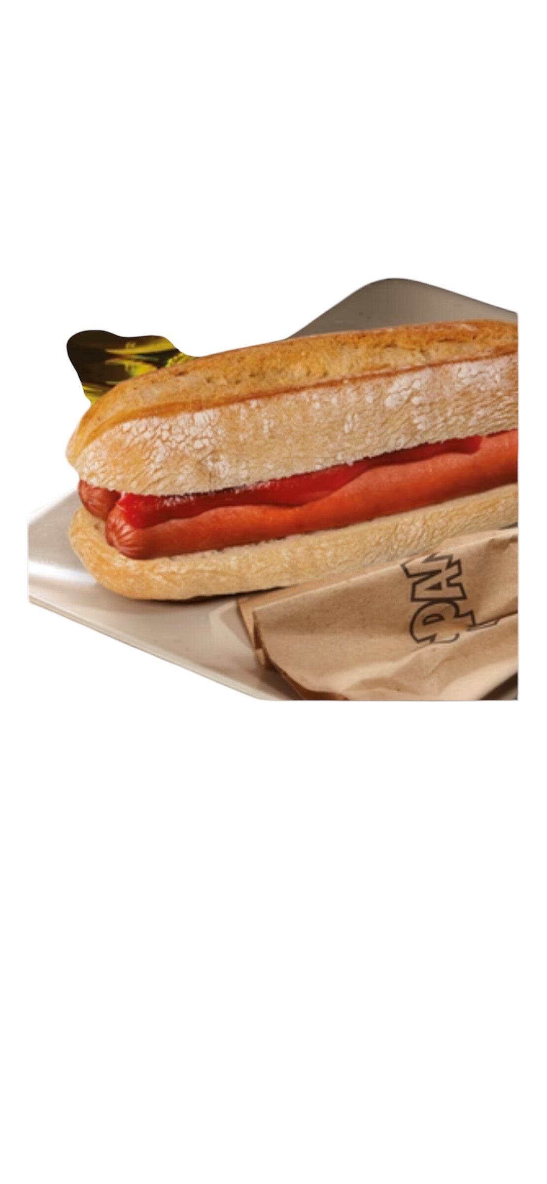 wurstel di suino e bustina di ketchup